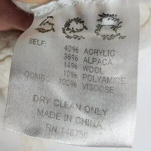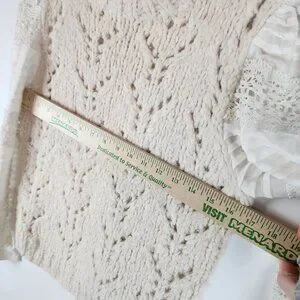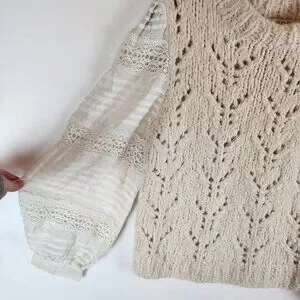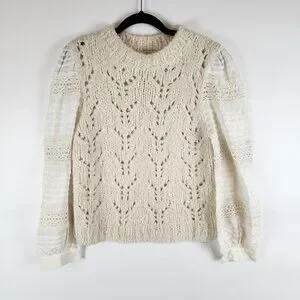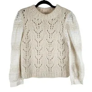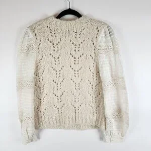 Sea New York Ellie Combo Sweater Cable Knit Puff Lace Sleeves Cream Alpaca Wool