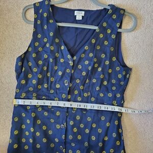 J. Crew Navy Linen Cotton Daisy Print Button Down 90s Cottagecore Dress 12