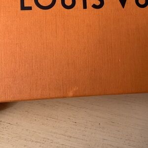 Louis Vuitton orange box with a cream dust bag. Perfect for storage or gifting.