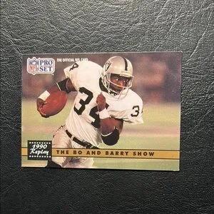 Collectible 1990 Pro Set NFL card featuring 'The Bo and Barry Show'. Iconic sports memorabilia for fans.