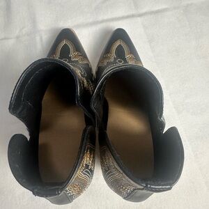 SHEIN Black and Gold Embroidered Ankle Boots size 6