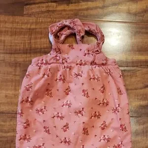 Janie and Jack 12-18 months pink floral corduroy overalls. Ruffled straps that are adjustable. Snaps between legs. Excellent condition. Pet and smoke free home.