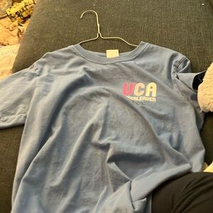 Comfortable blue UCA Cheerleader t-shirt. Perfect for casual wear.