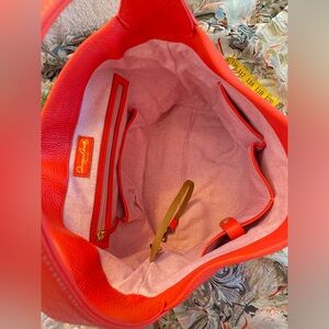 Like New Dooney & Bourke Large Genuine Leather red hobo bag logo lock keychain