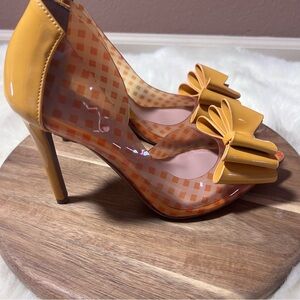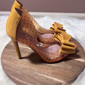 Betsey Johnson Kaison Yellow and Orange Bow Heels Size 6