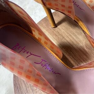 Elevate your style with these vibrant yellow and orange heels from Betsey Johnson.