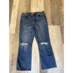 SO Kick Cropped Jeans Womens 15 Blue Denim High Rise Pockets Distressed Raw Hem.