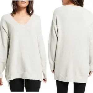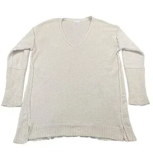 Description: Created for the woman who wants comfort and style - this Caslon sweater made in a boucle ivory knit is the perfect pullover. Created with a longer style fit and the chic knit style, classic v-neck, long sleeves, seamed detailing, ribbed knit cuffs and hem.