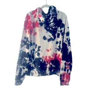 Ed Hardy Women's Red and Black Tie Dye Dagger Skull Fleece Hoodie Size M