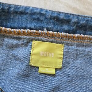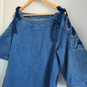 Anthropologie Maeve Denim Mini Dress Tunic Size M Shoulder Tie Boho Cottage