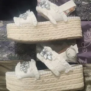 Zara Trafaluc Frayed Rhinestone Platform Sandals