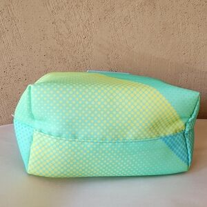 NWT stylish Clinique cosmetic bag in green and yellow. Perfect for organizing your essentials.