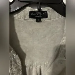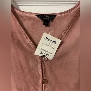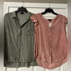 Set of two button-up shirts in green and pink. Green has been washed and worn once and pink is new with tag. Both size small.