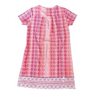 Cabana Life Pink and Red Patterned Short Sleeve Beach Pool Coverup Dress UPF50+