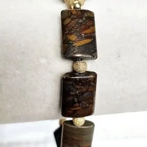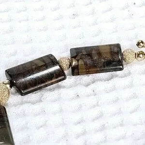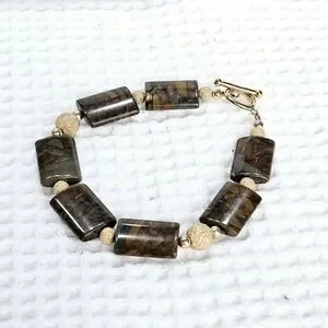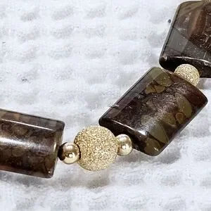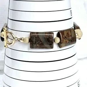Vintage 14KGP Gold and Brown Jasper Gemstone Beaded Bracelet