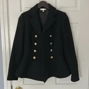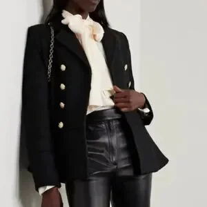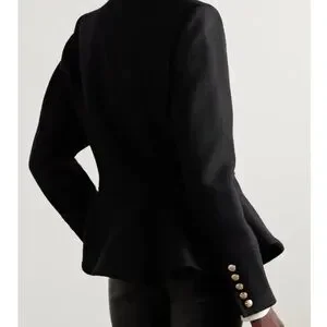 This sophisticated black jacket features a stylish double-breasted design, perfect for any occasion. Its elegant cut and classic color make it a versatile addition to your wardrobe.