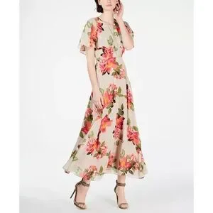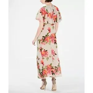 Calvin Klein Floral Printed Capelet Maxi Dress Evening Cocktail Wedding Guest summer spring floral flowers pink cream
