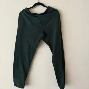 Comfortable and stylish women's green joggers from Roots. Has pockets. Logo is cracked and has a slight pink hue (possibly from washing)