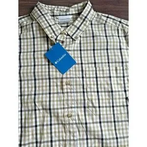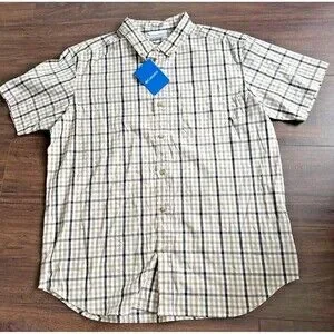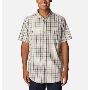 Columbia Men's Rapid Rivers Plaid Short Sleeves Button Down Cotton Shirt Beige L