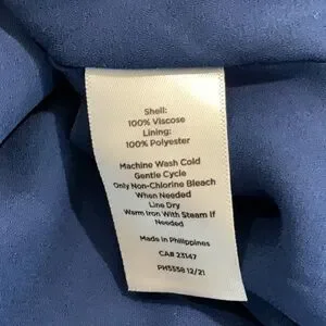 Fabric is polyester and visco quality made by Talbots.