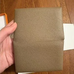 hermes Taupe Leather Envelope Wallet
