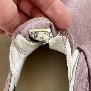 Women’s 7 / Men’s 5.5. Light purple (lavender) slip-on Vans shoes. Barely worn, really great condition! Only selling them because they’re a little too small for me.