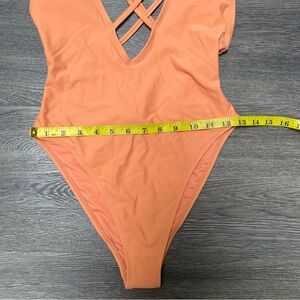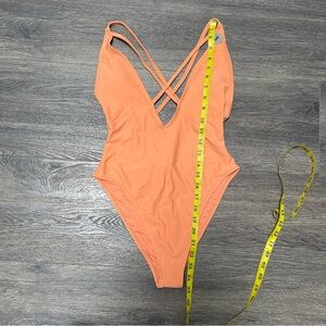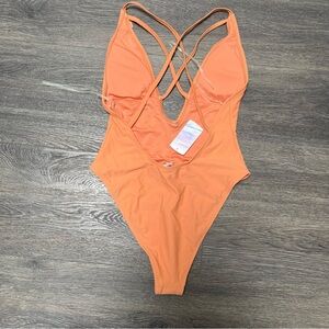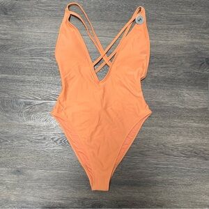 Stylish orange one-piece swimsuit with criss-cross straps. New with tags