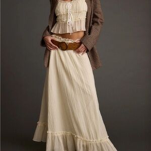 Worn once for a few hours for a photoshoot. It is so stunning, used for a maternity photoshoot and it was perfect. Willing to sell them separately just let me know but this is listed as a set right now. Top is a S skirt is a M