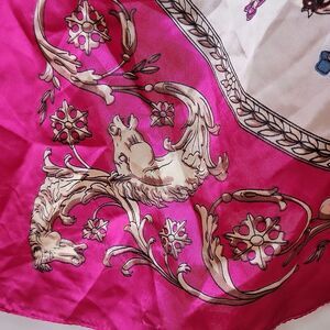 Vintage Equestrian Silk Scarf. Pink and Cream. EUC