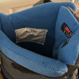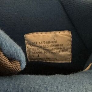 Lightly used. Size 4. Keep your child's feet warm and stylish with these durable gray and blue winter boots. Perfect for outdoor adventures.