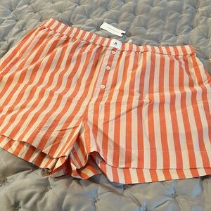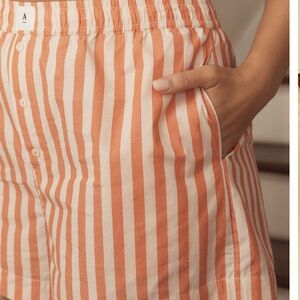Stylish striped orange shorts perfect for casual outings. Comfortable and trendy design. These are the viral shorts from anthropology great for lounging. size Extra large