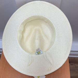 New design Masters Tournament Women Ivory Sun Straw Hat with White, Green Ribbon Band and Masters logo will take your golf style to new levels. One size fits most. Drawstring inside to ensure fit.