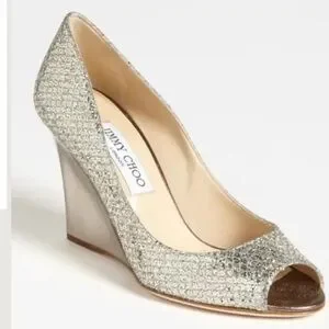 JIMMY CHOO Bello Glitter Wedge Heels- used condition with insoles. Comes with dust bag and box.