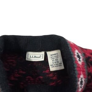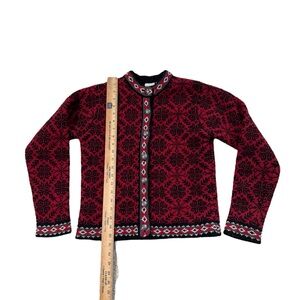 VTG LL Bean Merino Wool Cardigan Womens XS Red Black Snowflake Button Sweater