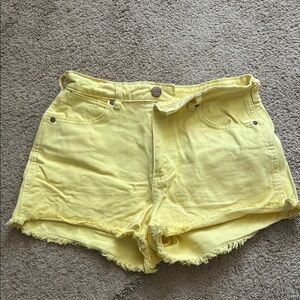 Brighten up your wardrobe with these stylish yellow frayed hem shorts. Perfect for casual outings and summer days.