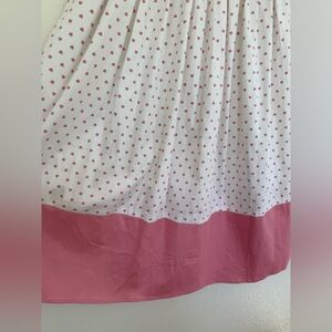 This pretty piece is our Brielle Love Heart Swing Dress – a cute, mid-century inspired style that just needs to be part of your collection! She’s fitted on the body with a boat neck that dips into a V at the back. Her skirt is gathered at the waist, and falls to approximately below the knee with a pink panel at the hem. She even has handy side seam pockets! She comes in white, and is covered in our bespoke print of adorable pink love hearts! She includes a pink belt to cinch in the waist, and she fastens via a covered zipper at the middle of her back.