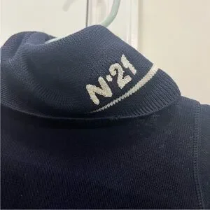 No. 21 Blue Striped Knit Logo Turtleneck Sweater Size Small