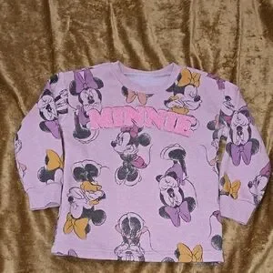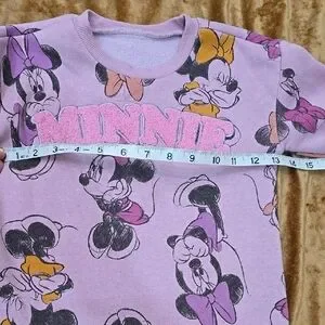 Adorable pink sweatshirt featuring Minnie Mouse graphics. Perfect for Disney fans. tag removed see measurements in wpuls say it's a size 4t thsts when mu daughter was wearing it. it has pilling on the front