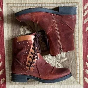 Beautiful burnished rustic brown suede combat boots made by Casta Rasta for Sundance. Totally unique!