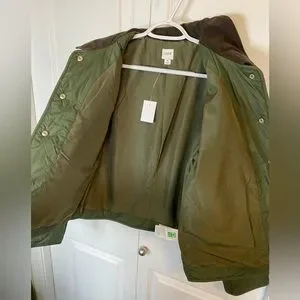J.Crew Factory quilted barn jacket in army/olive green.