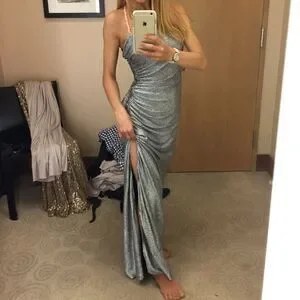 Deep cut on the side is very striking! The cut on the photo is actually much deeper than the dress as I used a brooch to lift it up.