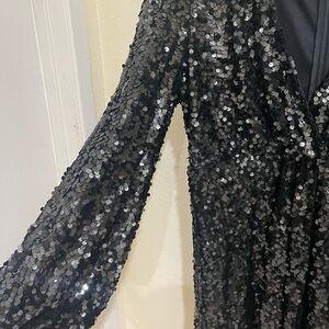 Shine at any event with this elegant black sequin dress. Perfect for evening occasions, this dress offers a stunning look with its shimmering design.