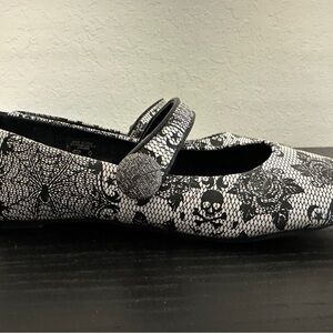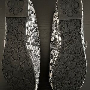Iron Fist Black and White Flats with Skull and Crossbones with Roses Design