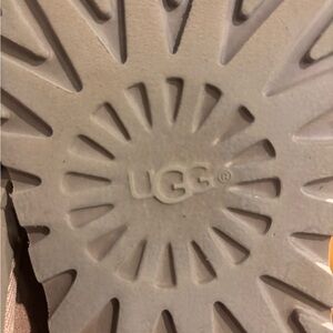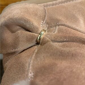 Experience ultimate warmth and style with these UGG winter mini boots, featuring a soft tan suede exterior and a cozy plush lining. The ankle-height design and thick rubber sole make them perfect for cold weather, while the charming suede bow detail adds a touch of elegance.