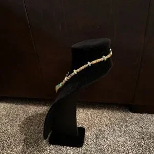 Handmade “One of a Kind” by Unique Earth, Turquoise, Shell & Sterling Silver Necklace very different & funky. It has handmade Native American Sterling Sulver Beads & Clasp. The center turquoise stone has an approximate 1” drop. It is approximately18 1/4” in length. It can be shortened or lengthened at no additional cost. Offers are welcome!