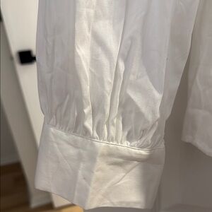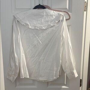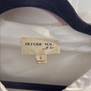 Before You with Love size large Peter Pan collar blouse. Has prettiest ruffles and is good thicker material so that it’s not see through. Never worn, size large. Has one tiny makeup stain on the bottom front right from trying it on - see pic.