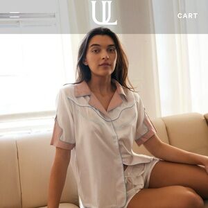 Understated leather PJs I used as my get ready pjs for gm elopement. Worn maybe for 15 mins. Stylish women's top featuring a playful embroidered design. The white and pink colors add a charming touch to your wardrobe. #bride #getreadypj.