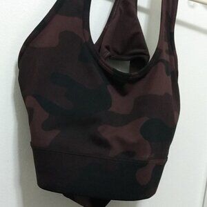 Features: Lightly padded. Double back band. Spandex & recycled materials. Classic camo print design. Great for gym, beach and running errands. No flaws, damage or smells. New, never used