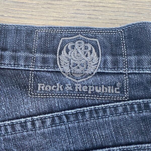 Rock & Republic Taylor Bootcut Jeans Size 34 Skull details faded black