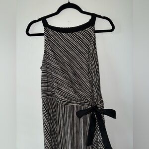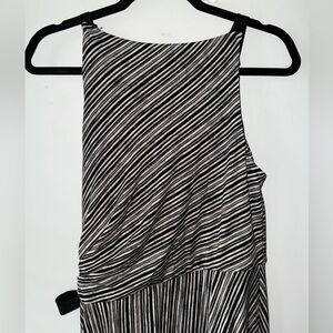 Step out in style with this elegant black and white striped dress. Perfect for any occasion, this dress offers a flattering fit and a chic design.